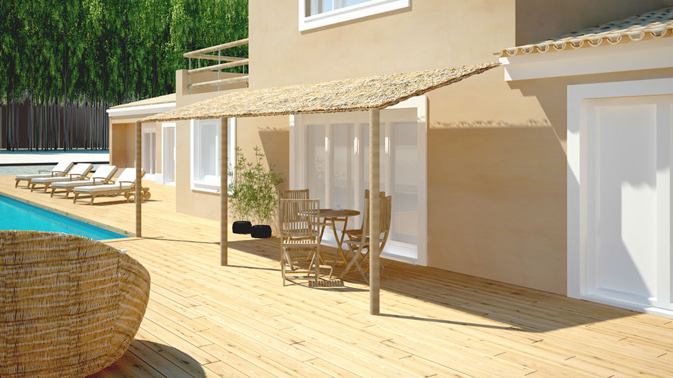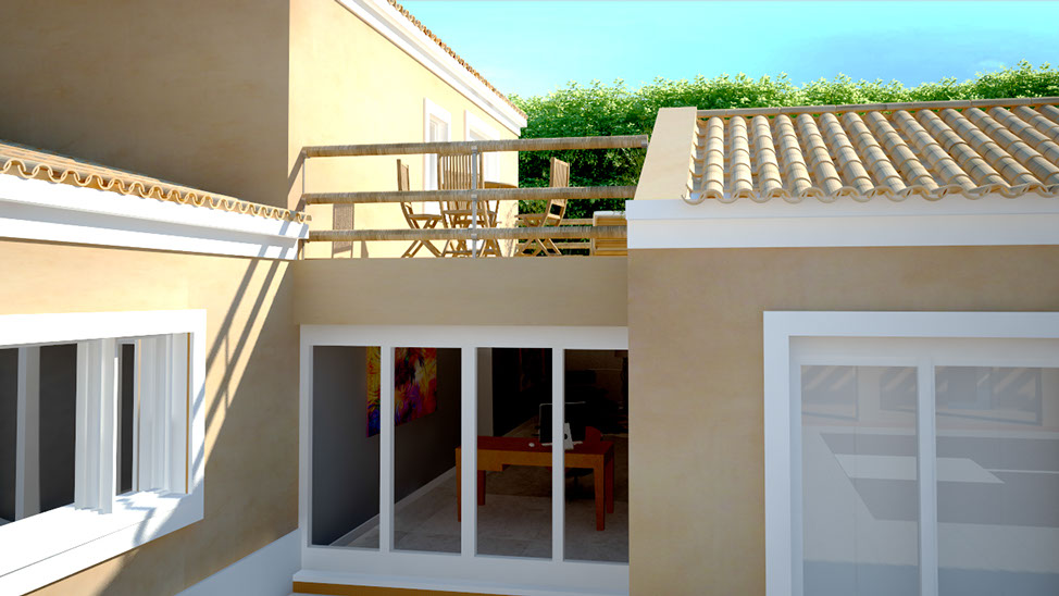 Modelagem e renderização 3D de um projecto de arquitectura. Este projeto foi desenvolvido para a empresa Plurimetrica. Com o mesmo, o cliente quer ficar com uma melhor noção se a expansão do plano de arquitetura era interessante esteticamente e também se encaixava no ambiente. Outro ponto de trabalho foi o espaço exterior, foi necessário criar uma estrutura de sombra perto da piscina, onde foram materializadas várias idéias do nosso cliente.